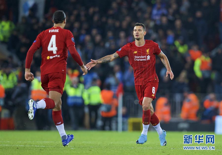 11月27日,利物浦队球员洛夫伦(右)在比赛中扳平比分后与队友庆祝。 当日,在2019-2020赛季欧洲足球冠军联赛E组比赛中,利物浦队主场以1比1战平那不勒斯队。 新华社发