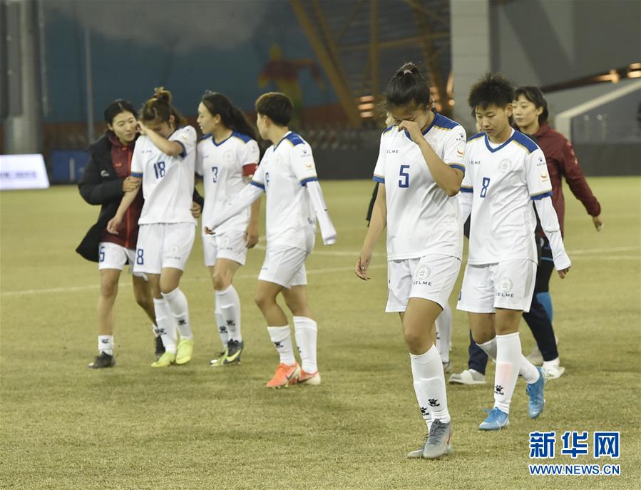 11月28日,中国北京师范大学队球员在比赛后。 当日,在2019年国际大体联足球世界杯女子组半决赛中,中国北京师范大学队在常规时间与加拿大渥太华大学队0比0战平,最终在点球大战中以3比5不敌对手,无缘决赛。 新华社记者贺灿铃摄