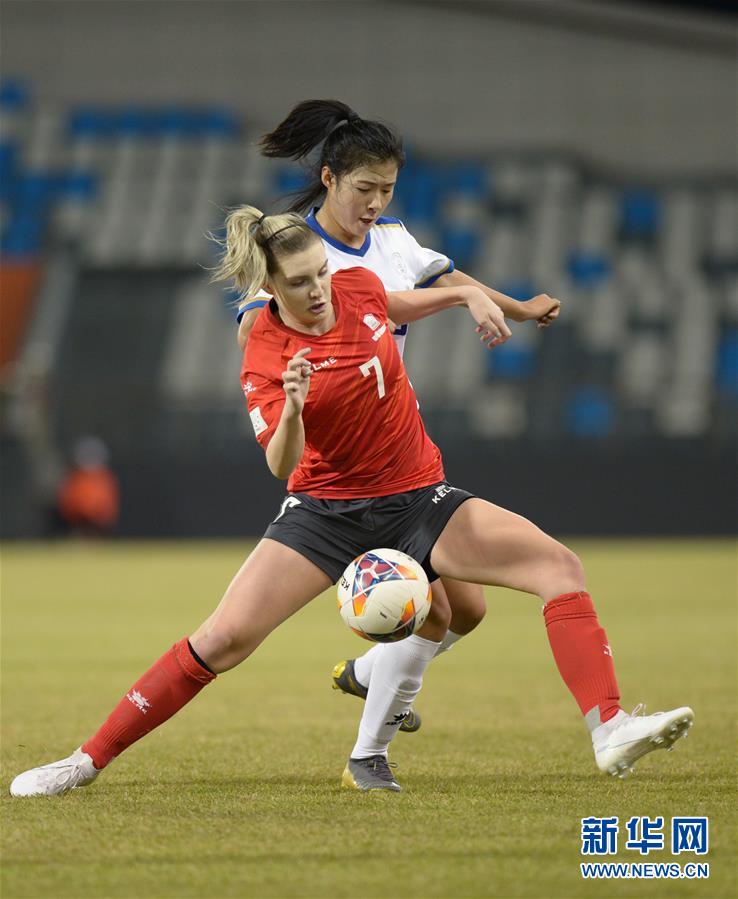 11月28日,加拿大渥太华大学队球员玛丽(前)与中国北京师范大学队球员孙晓宇在比赛中拼抢。 当日,在2019年国际大体联足球世界杯女子组半决赛中,中国北京师范大学队在常规时间与加拿大渥太华大学队0比0战平,最终在点球大战中以3比5不敌对手,无缘决赛。 新华社记者贺灿铃摄