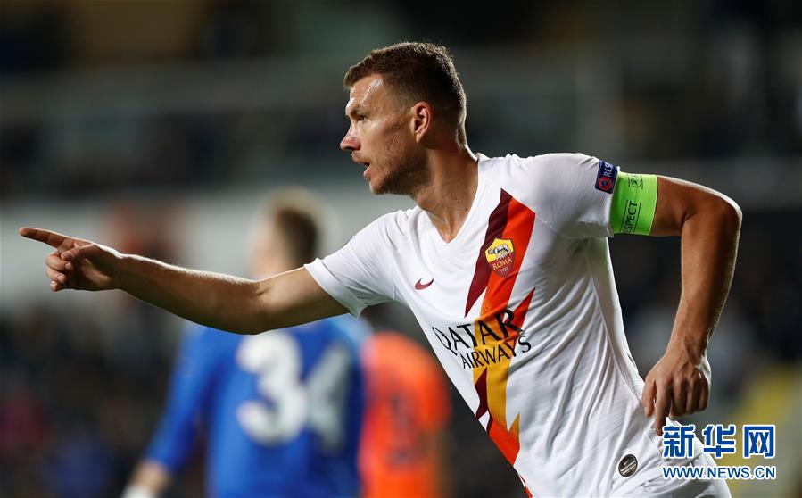 11月28日,罗马队球员哲科进球后庆祝。 当日,在2019-2020欧罗巴联赛J组比赛中,意甲罗马队客场以3比0战胜土超伊斯坦布尔队。 新华社/路透