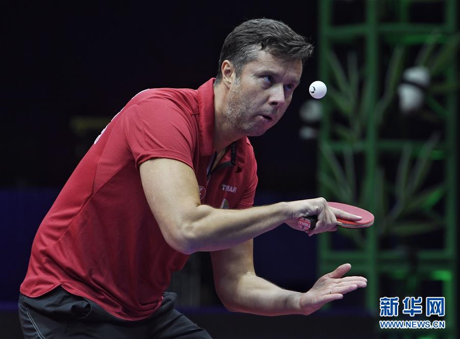 11月29日,萨姆索诺夫在比赛中发球。 当日,在成都举行的2019国际乒联男子世界杯单打预赛中,白俄罗斯选手萨姆索诺夫以2比4不敌德国选手奥恰洛夫。 新华社记者刘坤摄