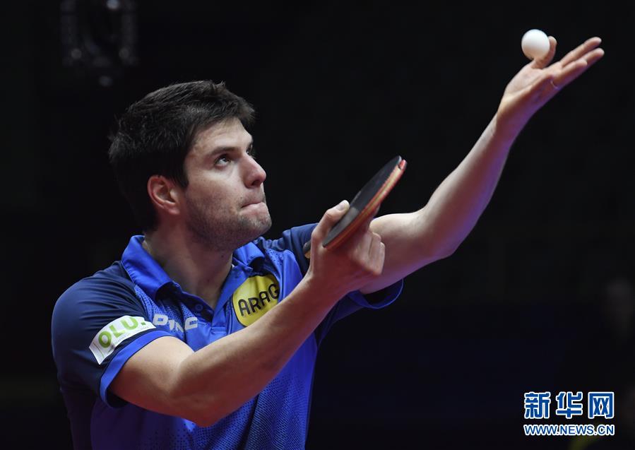11月29日,奥恰洛夫在比赛中发球。 当日,在成都举行的2019国际乒联男子世界杯单打预赛中,德国选手奥恰洛夫以4比3战胜奥地利选手哈贝松。 新华社记者刘坤摄
