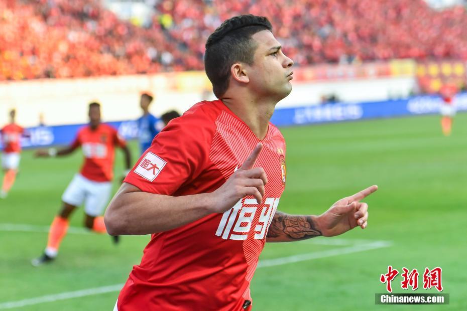 12月1日,在刚刚结束的2019赛季中超末轮比赛中,广州恒大主场3:0战胜上海申花,队史第8次夺得中超冠军。广州恒大曾在2011至2017赛季完成中超7连冠伟业,本赛季又在与北京国安、上海上港的激烈竞争中成为赢家,从而荣膺中超“八冠王”。图为广州恒大淘宝队球员艾克森在比赛中进球后庆祝。中新社记者 陈骥旻 摄