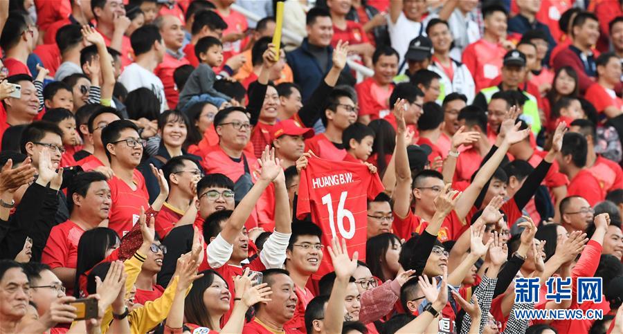 12月1日,球迷在广州天河体育中心庆祝恒大夺冠。 当日,在广州天河体育场进行的2019赛季中国足球协会超级联赛第30轮比赛中,广州恒大淘宝队主场以3比0战胜上海绿地申花队,夺得第八冠。 新华社记者 邓华 摄