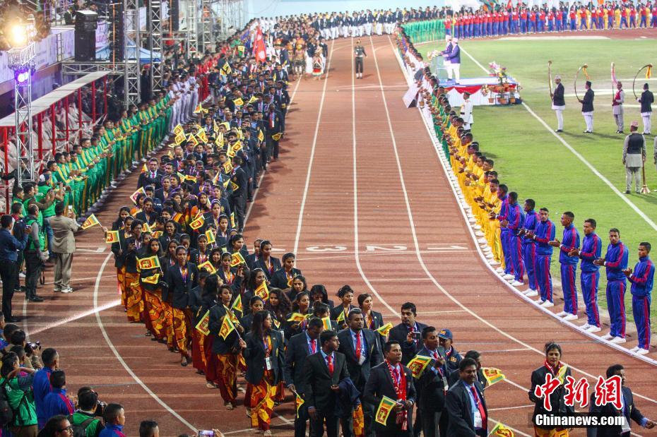 12月1日,第十三届南亚运动会开幕式在尼泊尔加德满都达什拉特体育场举行。图为斯里兰卡代表队进场。 中新社发 普拉丹 摄