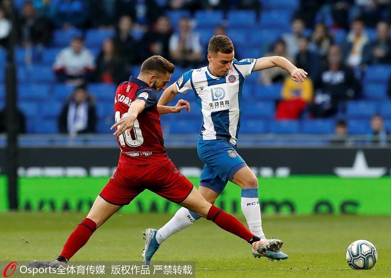 人民网北京12月2日电 北京时间12月1日23:00,2019/20赛季西甲第15轮一场焦点战在科尔内亚-埃普拉特球场展开争夺,西班牙人主场2-4不敌奥萨苏纳,武磊制造点球,罗卡先拔头筹,但鲁文-加西亚,阿维拉、蒙卡约拉和托雷斯连入4球逆转,隆卡利亚还被罚下,卡莱里扳回一城。这是西班牙人近5轮的第4场败仗,仍然深陷降级区。