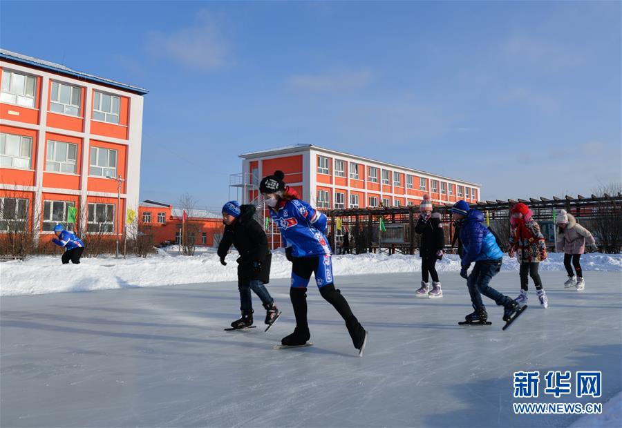 12月3日,学生们在图里河中小学滑冰场上滑冰。 图里河中小学位于内蒙古呼伦贝尔牙克石市图里河镇,距离“中国冷极”内蒙古根河市只有一个小时左右的车程。近期,这里白天气温已接近零下三十度,体感温度接近零下四十度。学校今年夏天动员教职工和周边滑冰爱好者将校园内一处荒地改造成平整的空地,并从初冬开始浇冰,打造出一个周长200米的滑冰场。学生们利用体育课和课间操等时间,在老师的指导下开展滑冰运动。这个滑冰场还定期向公众开放,让更多人感受冰雪运动的魅力。 新华社记者 徐钦 摄