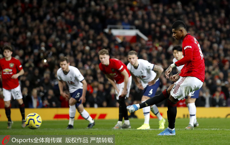 人民网北京12月5日电(杨磊) 北京时间12月5日凌晨,英超第15轮展开争夺,曼联主场2比1力克热刺,终结前主帅穆里尼奥接手热刺3连胜。拉什福德首开纪录并中楣,阿里连续3场破门扳平。下半场,拉什福德造点并主罚命中。