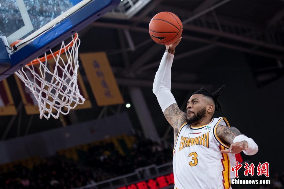 12月4日晚,山西省太原市,山西队球员莫兰德在比赛中扣篮。当日,在2019-2020赛季CBA联赛第13轮的较量中,山西汾酒股份男篮主场以107:88战胜浙江广厦。 中新社记者 韦亮 摄