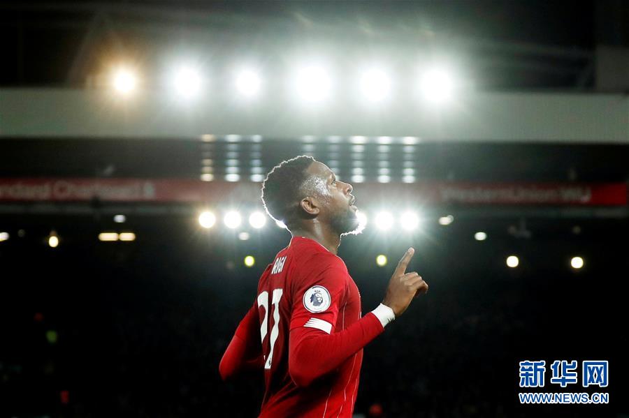 12月4日,利物浦队球员奥里吉在进球后庆祝。 当日,在2019-2020赛季英超联赛第15轮比赛中,利物浦队主场以5比2战胜埃弗顿队。 新华社/路透