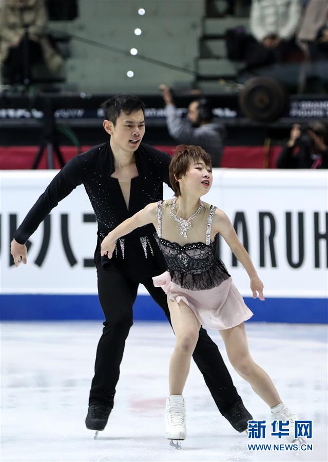 12月5日,彭程(右)/金杨在比赛中。 当日,在意大利都灵举行的2019-2020赛季国际滑联花样滑冰大奖赛总决赛双人滑短节目比赛中,中国组合彭程/金杨以69.67分的成绩暂列第五。 新华社记者程婷婷摄