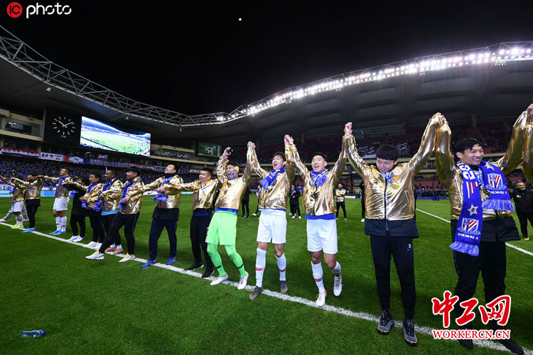 2019年12月6日,2019足协杯颁奖仪式,上海绿地申花夺冠。申花众将致谢球迷。图片来源:东方IC