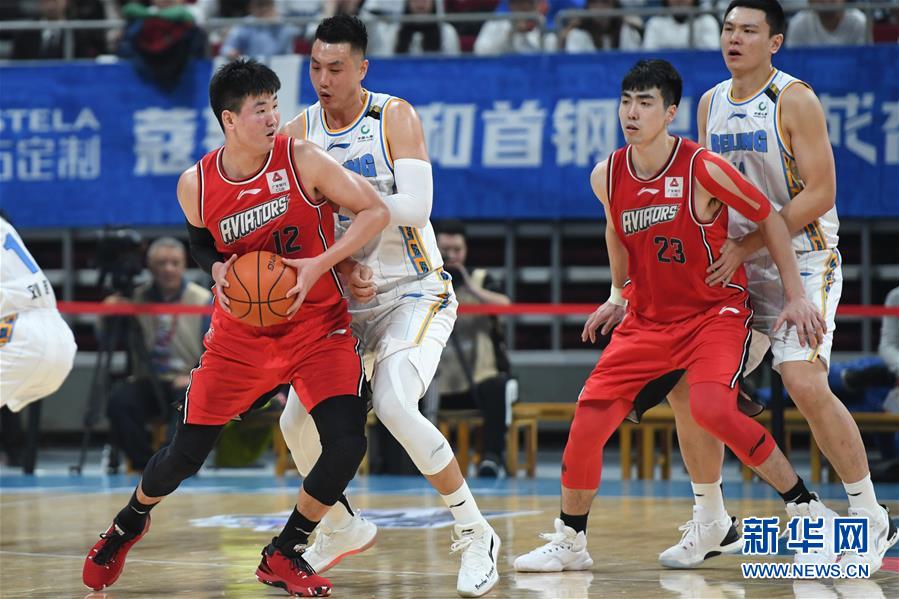 12月8日,北京首钢队球员翟晓川(左二)在比赛中防守深圳马可波罗队球员顾全(左一)。 当日,在2019-2020赛季中国男子篮球职业联赛(CBA)常规赛第14轮比赛中,北京首钢队主场以102比100战胜深圳马可波罗队。 新华社记者鞠焕宗摄