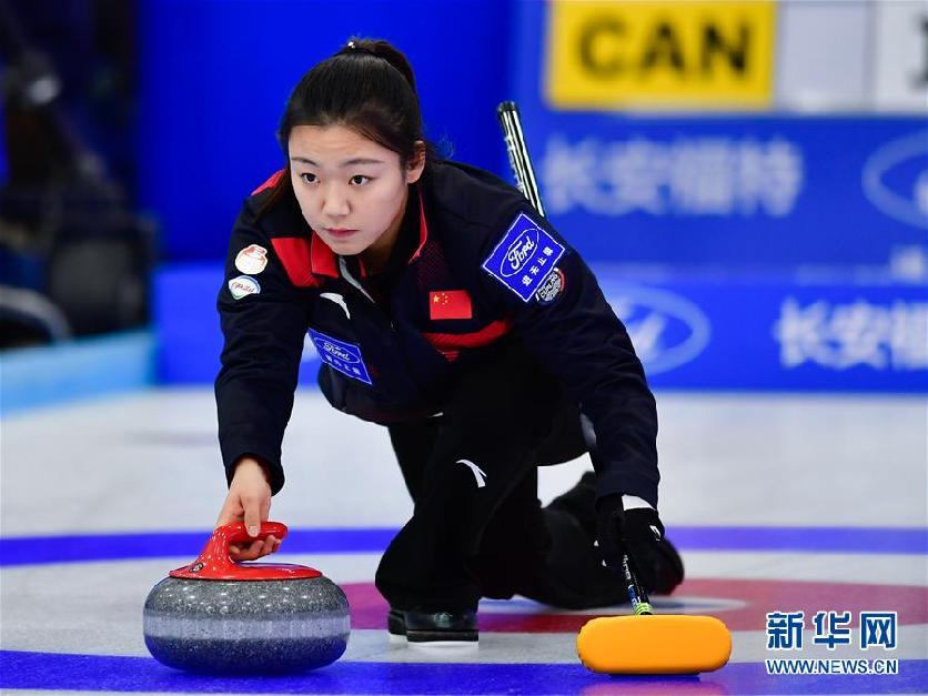 12月8日,中国队选手韩雨在比赛中掷壶。新华社记者 张龙摄