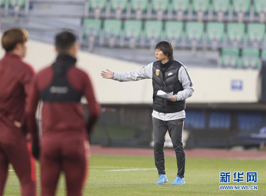 12月9日,中国国家男子足球选拔队主教练李铁在指导队员训练。 当日,中国国家男子足球选拔队进行训练,备战2019年东亚足球锦标赛,中国国家男足选拔队将于12月10日首战对阵日本男足。 新华社记者张可任摄