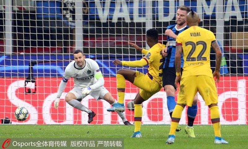 人民网北京12月11日电(杨磊) 北京时间12月11日凌晨,欧冠小组赛F组最后一轮展开争夺,国际米兰主场1比2负于巴塞罗那,跌至小组第3进入欧联杯。卡莱斯-佩雷斯首开纪录,卢卡库追平比分。下半时,劳塔罗-马丁内斯与卢卡库进球无效。替补小将法蒂上演绝杀。