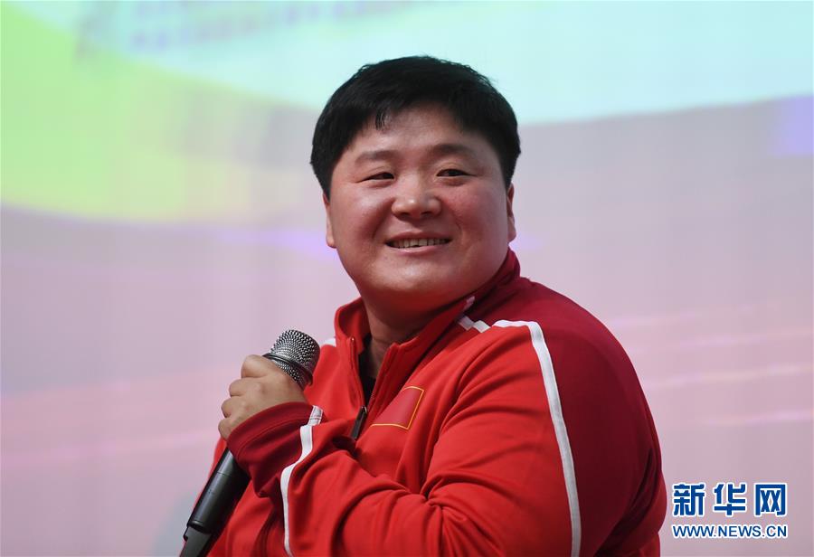 12月10日,巩立姣在座谈中回答学生提问。 当日,以“同上一堂好课 共筑爱国信念”为主题的田径明星进校园活动在北京体育大学举行。国家田径队队员巩立姣、李玲、王宇与师生一起上课,并座谈交流。 新华社记者贾宇辰摄