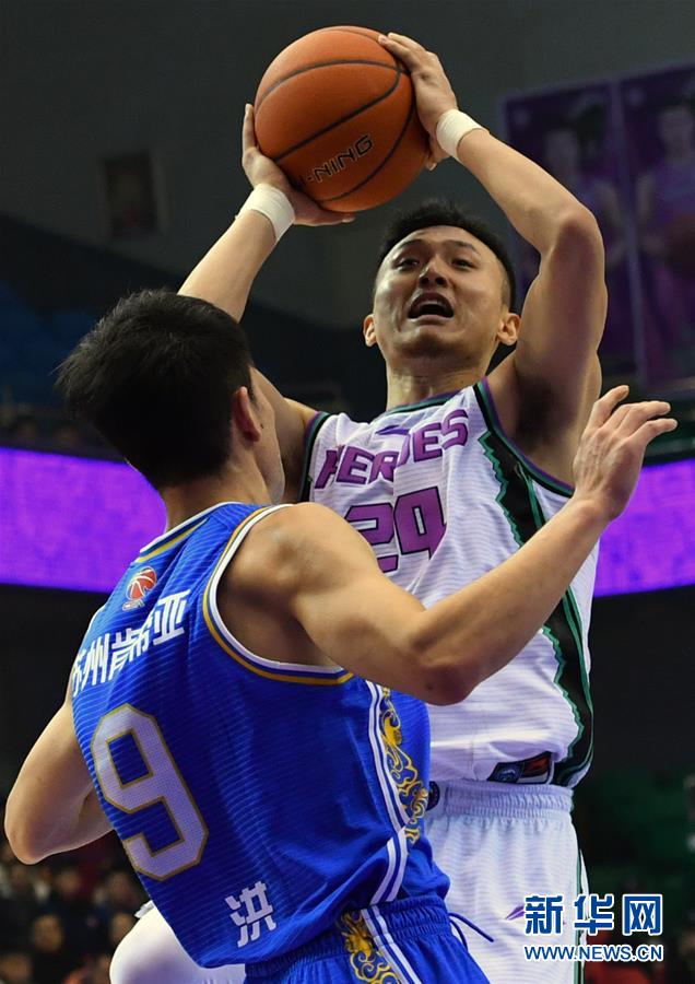 12月10日,山东西王队球员王汝恒(上)在比赛中投篮。 当日,在2019-2020赛季中国男子篮球职业联赛(CBA)常规赛第15轮比赛中,山东西王队在济南主场以107比92战胜苏州肯帝亚队。 新华社记者朱峥摄