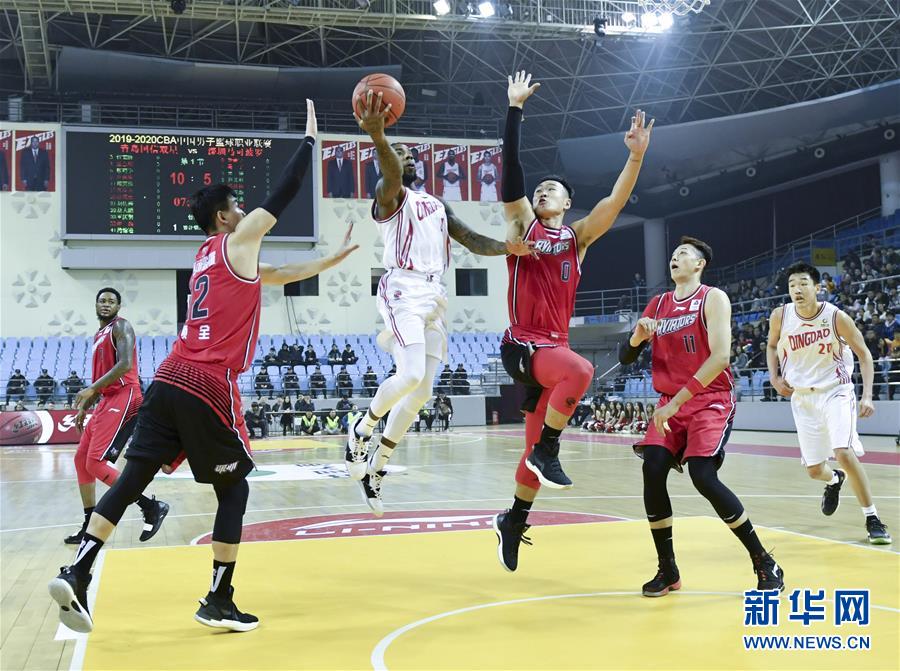 12月10日,青岛国信双星队球员亚当斯(左三)在比赛中上篮。 当日,在2019-2020赛季中国男子篮球职业联赛(CBA)常规赛第15轮比赛中,青岛国信双星队主场以94比73战胜深圳马可波罗队。 新华社发(钟玉先摄)