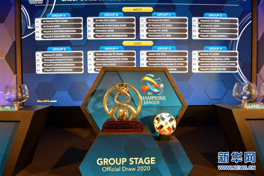 12月10日,抽签仪式大屏幕上显示抽签结果。 当日,2020年亚冠联赛小组赛阶段抽签仪式在位于马来西亚吉隆坡的亚足联总部举行。 新华社发(张纹综摄)