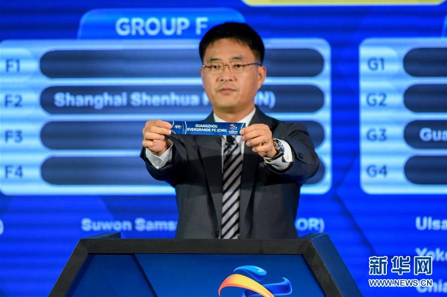 12月10日,亚足联竞赛部负责人申晚吉在抽签仪式上展示广州恒大队抽签结果。 当日,2020年亚冠联赛小组赛阶段抽签仪式在位于马来西亚吉隆坡的亚足联总部举行。 新华社发(张纹综摄)