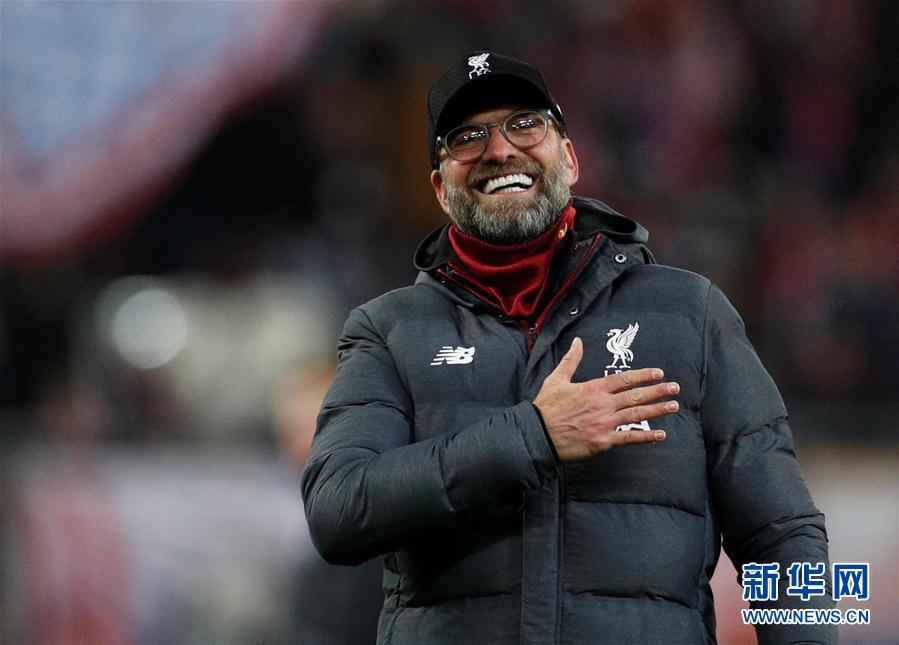 12月10日,利物浦队主教练克洛普在球队获胜后庆祝。 当日,在2019-2020赛季欧冠联赛小组赛E组比赛中,英超利物浦队客场以2比0战胜奥超萨尔茨堡队,晋级十六强。 新华社/路透