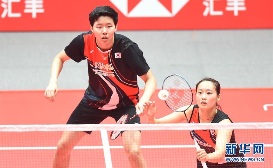 12月11日,韩国选手徐承宰(左)/蔡侑玎在比赛中。 当日,在2019世界羽联世界巡回赛总决赛混合双打小组赛A组比赛中,泰国选手德查波尔/沙西丽以2比0战胜韩国选手徐承宰/蔡侑玎。 新华社记者 卢汉欣 摄