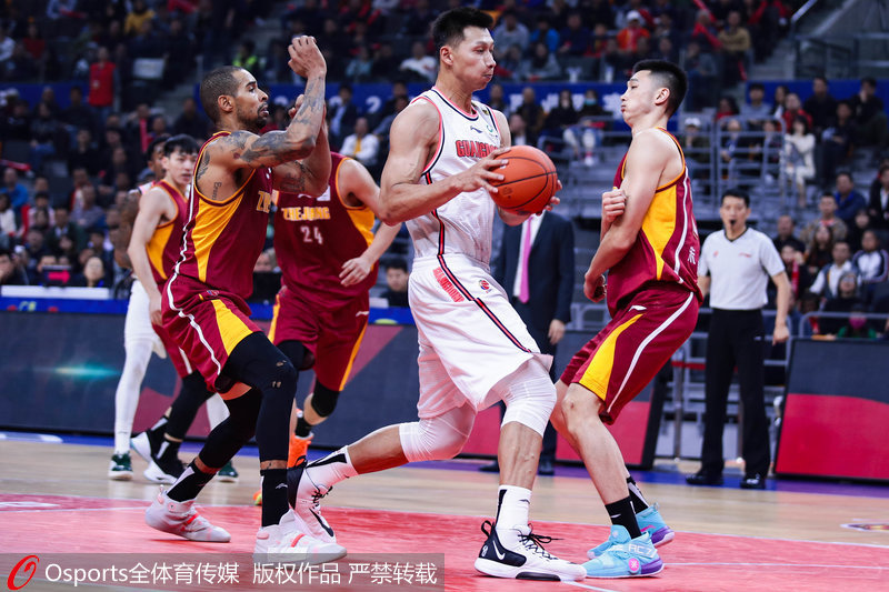人民网北京12月13日电(杨磊) 12月12日晚,2019-20CBA常规赛第16轮继续进行,卫冕冠军广东男篮在主场迎战浙江队。最终,广东男篮108-106险胜浙江男篮,豪取12连胜,目前以15胜1负的战绩稳坐积分榜榜首之位。