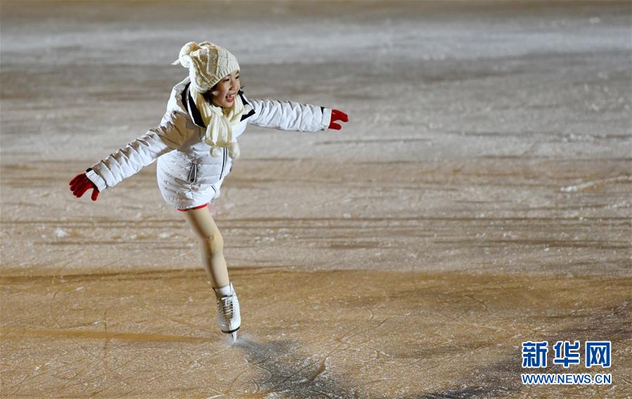 12月12日,演员在启动仪式现场滑冰。 当日,第六届全国大众冰雪季在天津奥林匹克中心体育场启动。本届冰雪季由体育总局、北京冬奥组委和天津市政府共同主办,将围绕“激扬中国梦、快乐冰雪行”主题,结合中国冰雪大会暨天津冰雪运动嘉年华活动,开展一系列内容丰富、惠民便民的冰雪赛事活动。 新华社记者李然摄