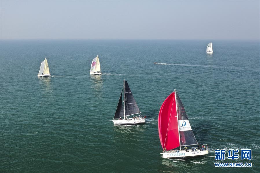 12月12日,参赛帆船在比赛中(无人机拍摄)。 当日,2019“一带一路”国际帆船赛北海站比赛在广西北海扬帆开赛,共有南非、荷兰、美国、日本、韩国、意大利等20多个国家和地区的400多名船员及竞赛官员参与本站,参赛帆船近100艘。北海站比赛结束后,赛事还将在新加坡及马来西亚继续进行。 新华社记者曹祎铭摄