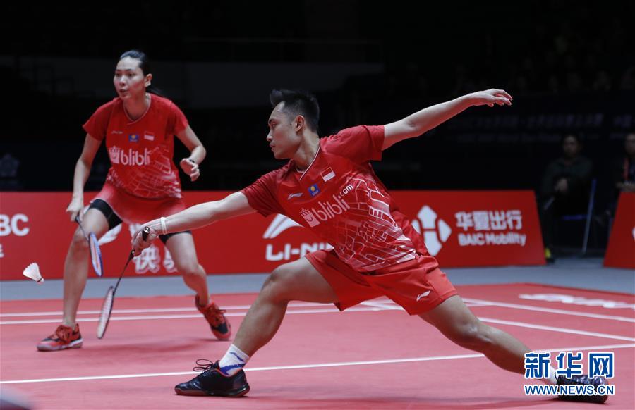 12月12日,印度尼西亚选手菲泽尔(右)/维德佳佳在比赛中。 当日,在广州举行的2019世界羽联世界巡回赛总决赛混双B组小组赛中,中国组合郑思维/黄雅琼以2比1战胜印度尼西亚组合菲泽尔/维德佳佳。 新华社记者张晨摄