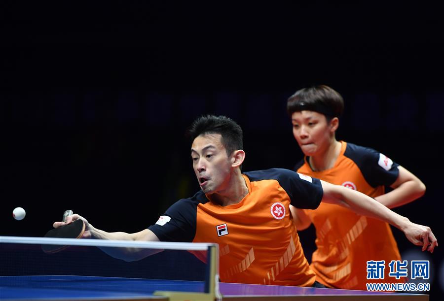 12月12日,黄镇廷(前)/杜凯琹在比赛中回球。 当日,在郑州进行的2019国际乒联世界巡回赛总决赛混双四分之一决赛中,中国香港选手黄镇廷/杜凯琹以3比0战胜斯洛伐克选手皮斯特耶/巴拉佐娃,晋级四强。 新华社记者 李嘉南 摄
