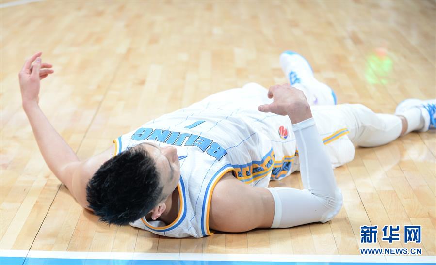 12月17日,北京首钢队球员林书豪在比赛中倒地。 当日,在2019-2020赛季中国男子篮球职业联赛(CBA)常规赛第18轮比赛中,北京首钢队主场以105比95战胜浙江广厦控股队。 新华社发(侯昭康摄)