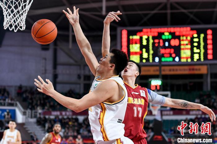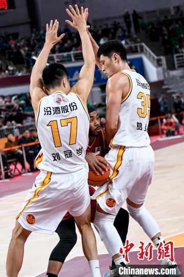 山西汾酒股份球员原帅(白)在比赛中抢球。 韦亮 摄