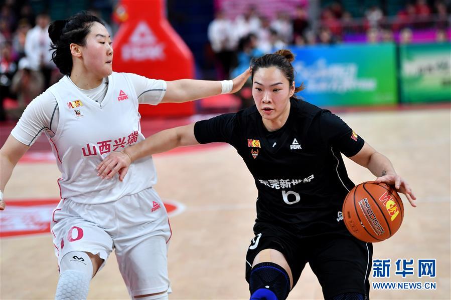 12月19日,东莞新彤盛球员沈怡(右)在比赛中带球突破。 当日,在2019-2020赛季中国女子篮球联赛(WCBA)常规赛第12轮比赛中,东莞新彤盛队客场以85比74战胜山西竹叶青队。 新华社记者詹彦摄