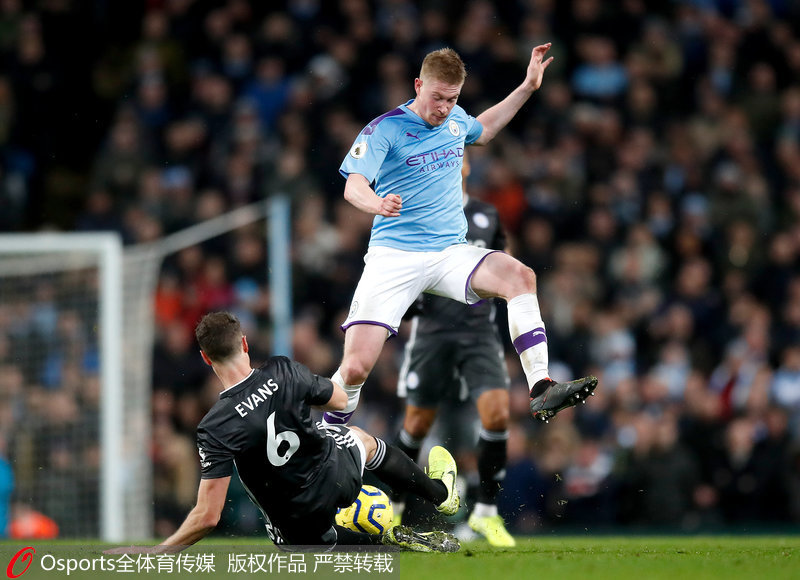 人民网北京12月22日电(马翼) 北京时间12月22日,英超第18轮,曼城主场迎战莱斯特城。上半场比赛,瓦尔迪率先为莱斯特城打破僵局,马赫雷斯帮助曼城扳平比分,随后斯特林造点,京多安主罚命中帮助曼城反超。下半场比赛,德布劳内助攻热苏斯锁定胜局。最终,曼城主场3-1逆转战胜莱斯特城,将双方的分差缩小到1分。