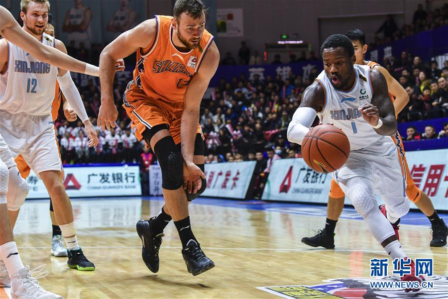 12月22日,新疆伊力特队球员费尔德(右)在比赛中带球突破。 当日,在2019-2020赛季中国男子篮球职业联赛(CBA)常规赛第20轮比赛中,新疆伊力特队主场以106比97胜上海久事队。 新华社记者王菲摄