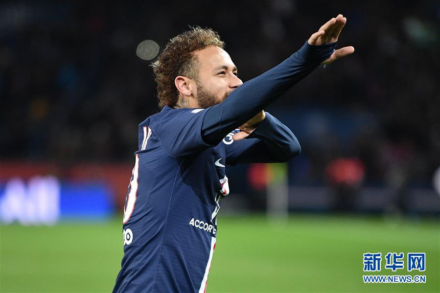 12月21日,巴黎圣日耳曼队球员内马尔庆祝进球。 当日,在2019-2020赛季法国足球甲级联赛第19轮比赛中,巴黎圣日耳曼队主场以4比1战胜亚眠队。 新华社发(杰克·陈摄)