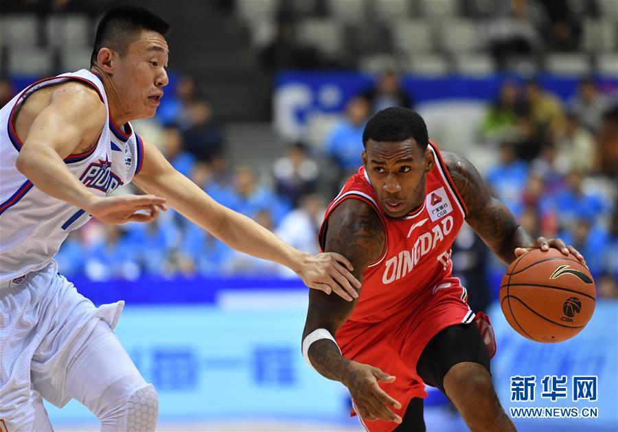 12月22日,青岛国信双星队球员亚当斯(右)在比赛中运球突破。 当日,在2019-2020中国男子篮球职业联赛(CBA)常规赛第20轮比赛中,青岛国信双星队客场以127比103战胜天津先行者队。 新华社记者李然摄
