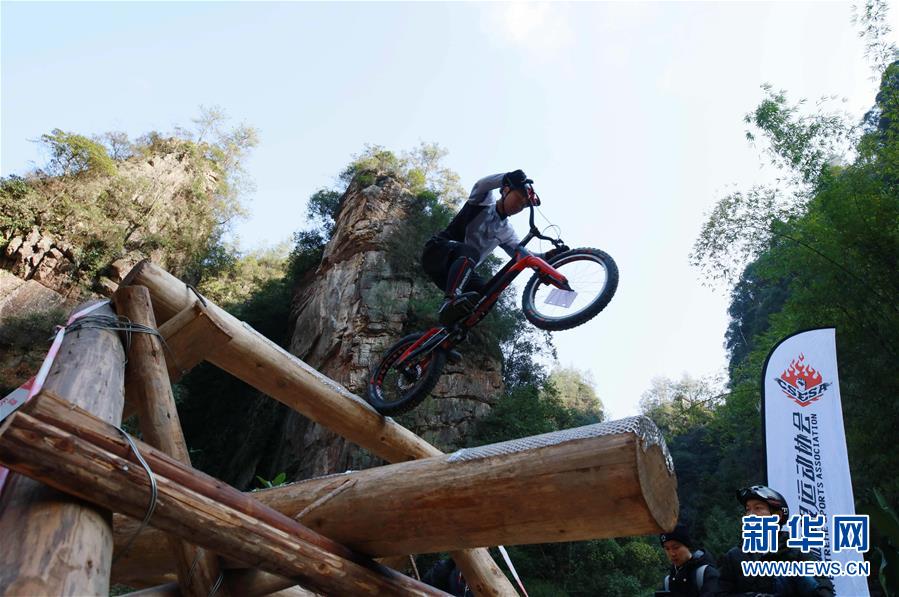 12月22日,贵州自行车手邹禹希在攀爬竞技比赛中,最终他获得了第三名。 当日,2019中国户外健身休闲大会宝峰湖自行车攀爬精英表演赛在湖南张家界宝峰湖景区举行,来自广西、湖北、重庆等地的9名极限自行车手在秀美的山水间进行高难度的攀爬竞技表演比赛。 新华社发(吴勇兵摄)