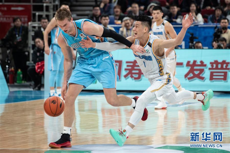12月25日,新疆伊力特队球员米卡(左)与北京首钢队球员林书豪在比赛中拼抢。 当日,在2019-2020赛季中国男子篮球职业联赛(CBA)常规赛第21轮比赛中,北京首钢队主场以87比88不敌新疆伊力特队。 新华社记者 吴壮 摄