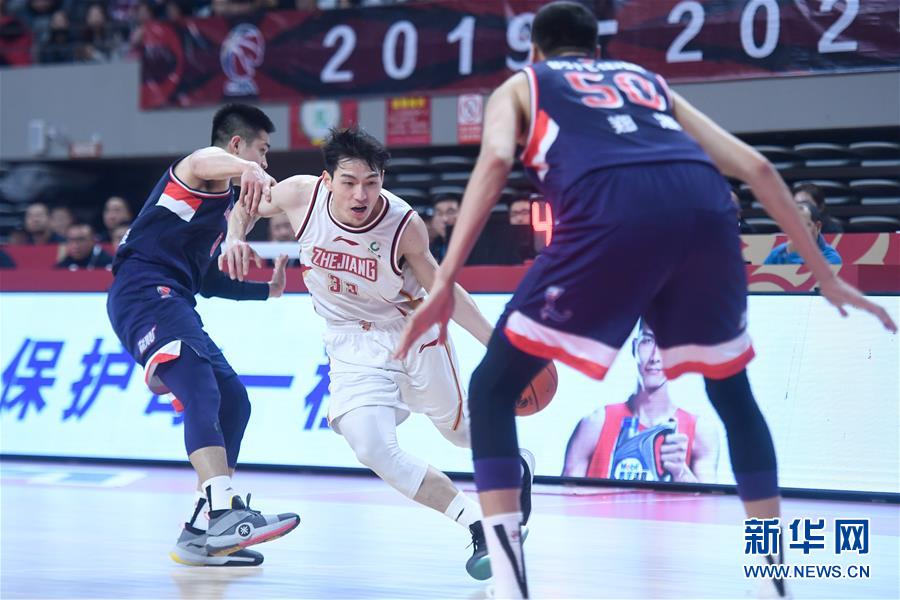 12月25日,浙江稠州银行队球员吴前(中)在比赛中进攻。 当日,在2019-2020赛季中国男子篮球职业联赛(CBA)常规赛第21轮比赛中,浙江稠州银行队主场以119比107战胜时代中国广州队。 新华社记者 黄宗治 摄