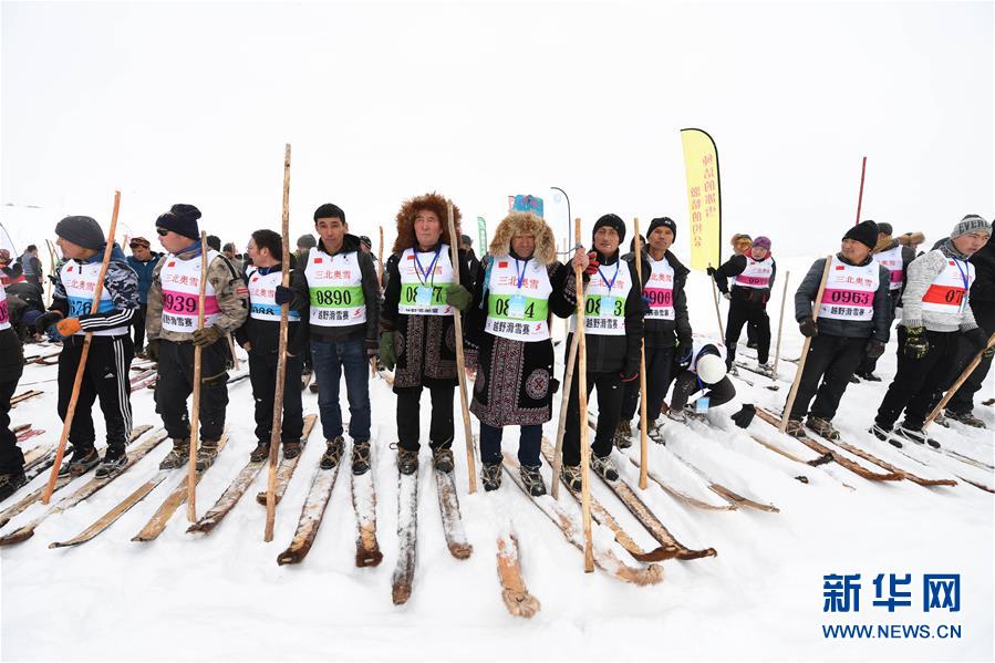 12月26日,参赛选手准备出发。 当日,2019阿勒泰人类滑雪起源地古老与现代越野滑雪赛在新疆阿勒泰市开赛,吸引众多滑雪爱好者与运动员参与。本届赛事为期两天,共分男子大师组、男子精英组、女子大师组、女子精英组、古老滑雪男子组、古老滑雪与现代滑雪接力组六个组别。 新华社记者 沙达提 摄
