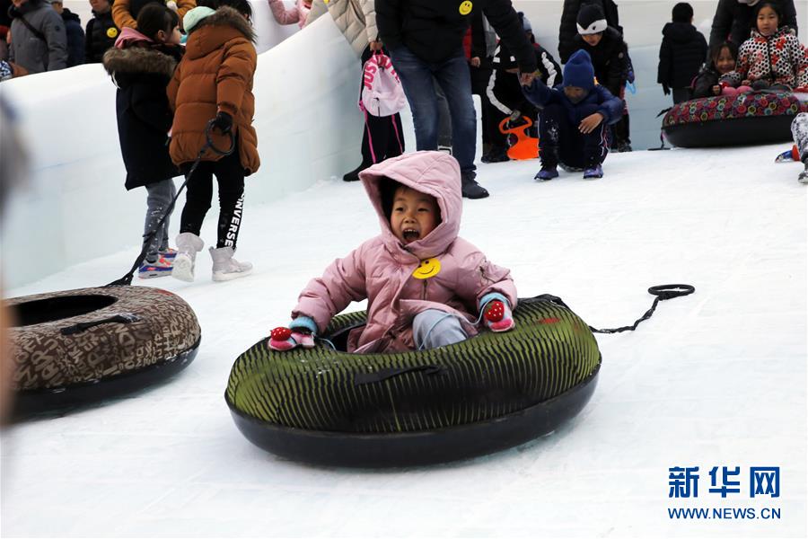 12月27日,小学生在活动上体验冰雪滑梯。 当日,北京东城区分司厅小学一、二年级近1500名学生及家长在国家体育场举行冰雪嘉年华活动,感受冰雪世界带来的快乐。 新华社发(周良 摄)