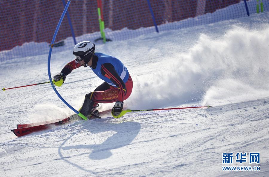 12月29日,黑龙江代表队选手王禹在比赛中。最终,他以1分38秒03的总成绩获得亚军。 当日,第十四届全国冬季运动会高山滑雪男子回转比赛在内蒙古自治区喀喇沁旗美林谷滑雪场进行。 新华社记者 徐钦 摄