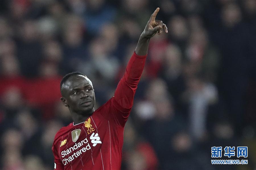 12月29日,利物浦队球员马内庆祝进球。 当日,在2019-2020赛季英格兰足球超级联赛第20轮比赛中,利物浦队主场以1比0战胜狼队。 新华社/美联