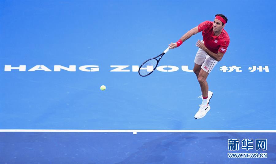 12月29日,瑞士选手费德勒在比赛中。 当日,在浙江杭州奥体中心举行的2019天猫杯国际网球邀请赛中,瑞士选手费德勒以2比1战胜德国选手亚历山大·兹维列夫。 新华社记者黄宗治摄
