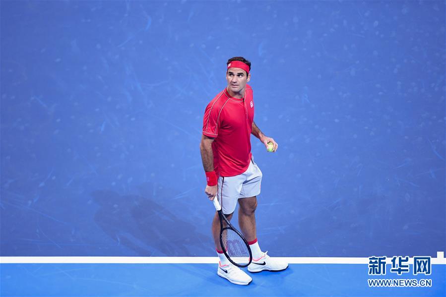 12月29日,瑞士选手费德勒在比赛中查看大屏幕显示的比分。 当日,在浙江杭州奥体中心举行的2019天猫杯国际网球邀请赛中,瑞士选手费德勒以2比1战胜德国选手亚历山大·兹维列夫。 新华社记者黄宗治摄