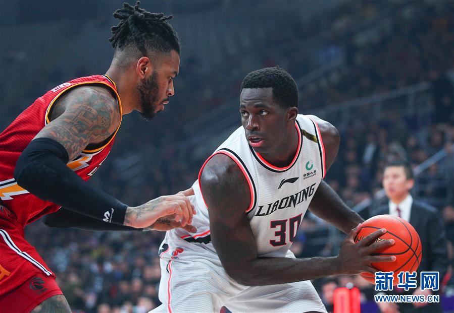12月29日,辽宁本钢队球员巴斯(右)在比赛中进攻。 当日,在2019-2020赛季中国男子篮球职业联赛(CBA)常规赛第22轮比赛中,辽宁本钢队主场以116比108战胜山西汾酒股份队。 新华社记者龙雷摄
