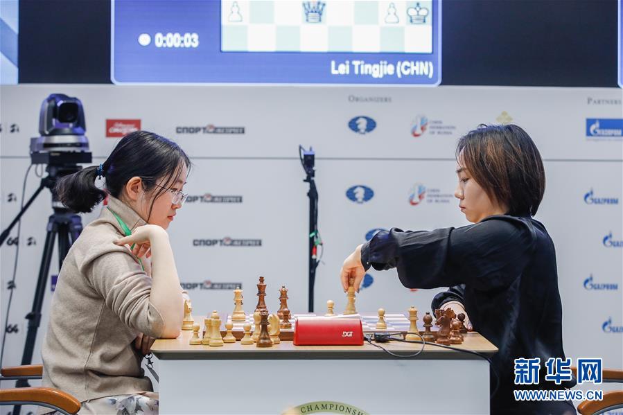 12月30日,中国选手雷挺婕(右)和谭中怡在超快棋比赛中。 当日,2019世界国际象棋快棋和超快棋锦标赛在俄罗斯莫斯科落幕。 新华社发(切尔纳夫斯基摄)